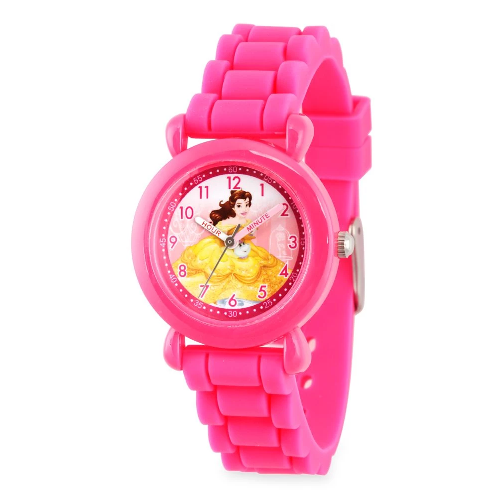 Be our guest and put learning to the test with our Belle Time Teacher Watch. Featuring easy-to-read minutes, labeled hands, and dreamy dial art, this cute character wristwatch is fanciful, fashionable and fun.