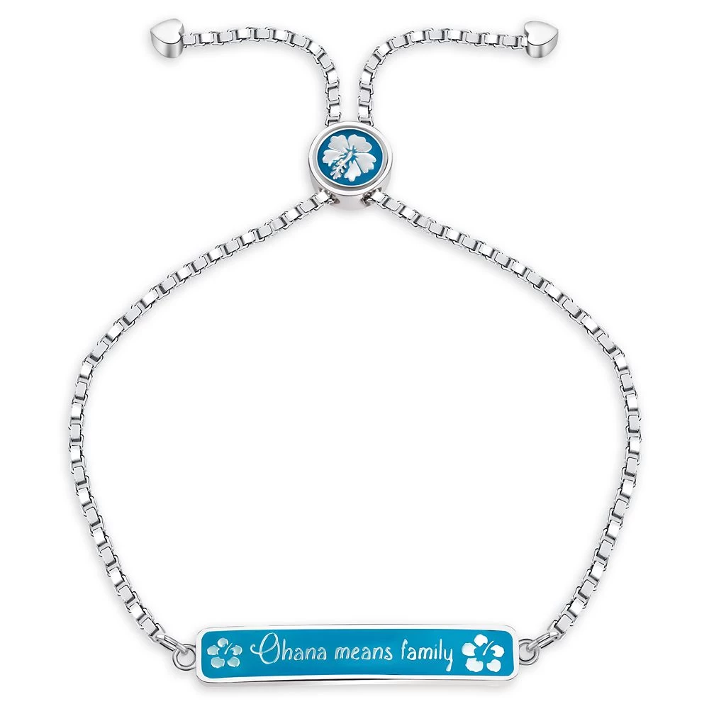 The memorable Lilo & Stitch quote ”Ohana means family” takes on a charming meaning with this gorgeous silver tone bracelet. Keep what matters most close at hand in stunning, tropical fashion.
