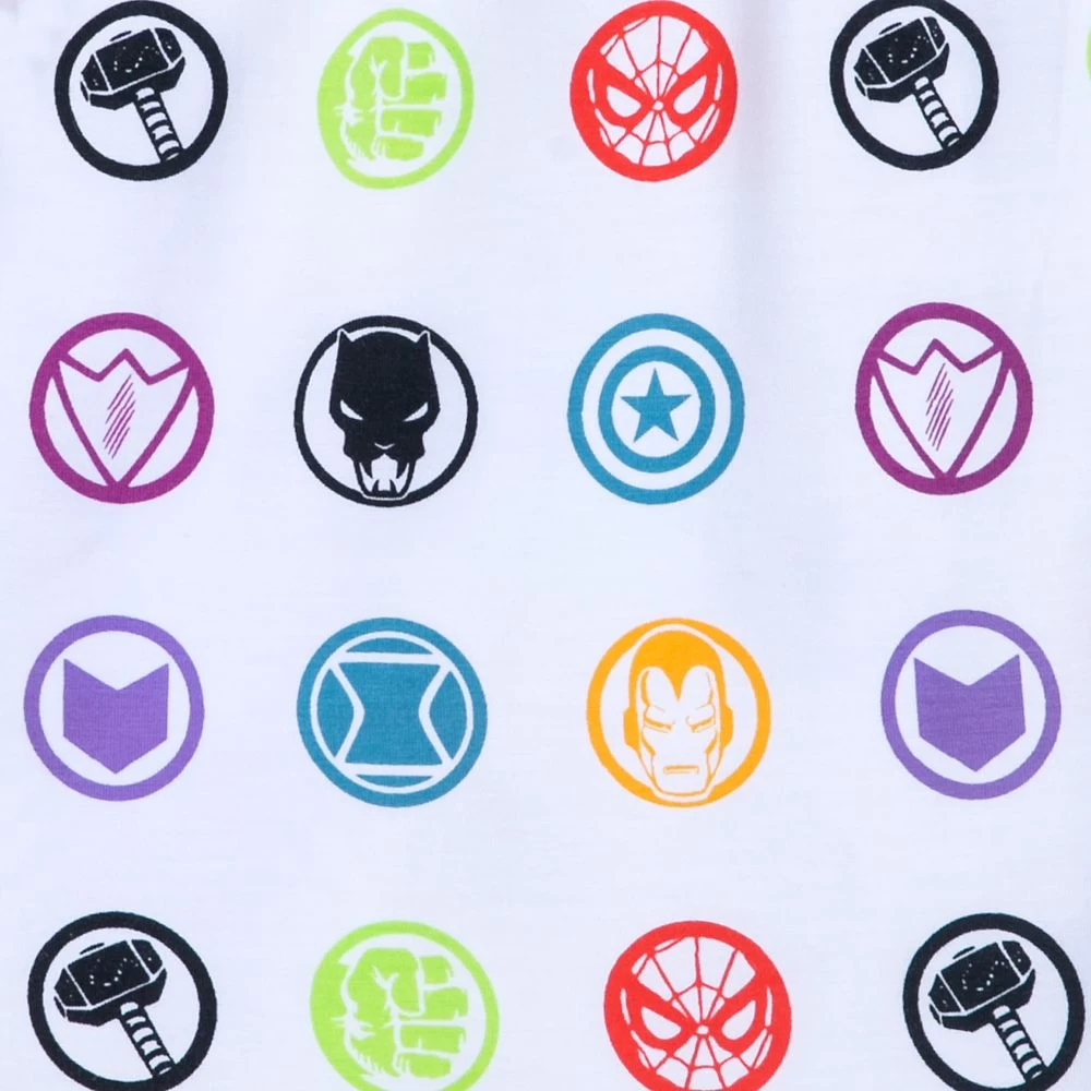 You’ll look forward to taking a power nap in this Marvel short sleep set. Classic vintage artwork featuring Iron Man, Hulk, Captain America and Thor is pictured above the Marvel logo on the white tee. Perfect for when you’re battling exhaustion, the coordinating shorts feature an allover print of colorful Marvel character icons including Spider-Man, Black Panther and Black Widow.