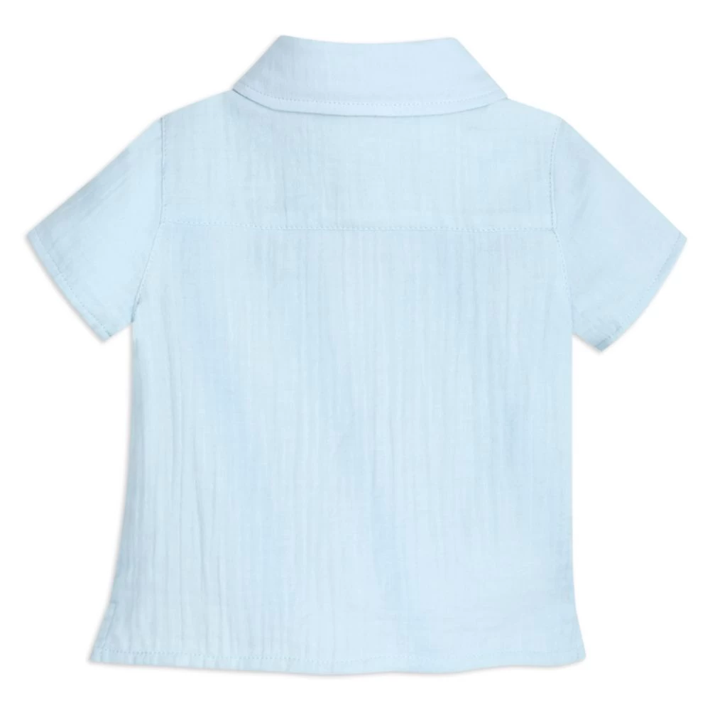Baby will look oh so chic in this matched woven top and bottom set with an upscale leisure look. Button front shirt and coordinating pants both feature embroidered Mickey Mouse icons on a double gauze fabric.