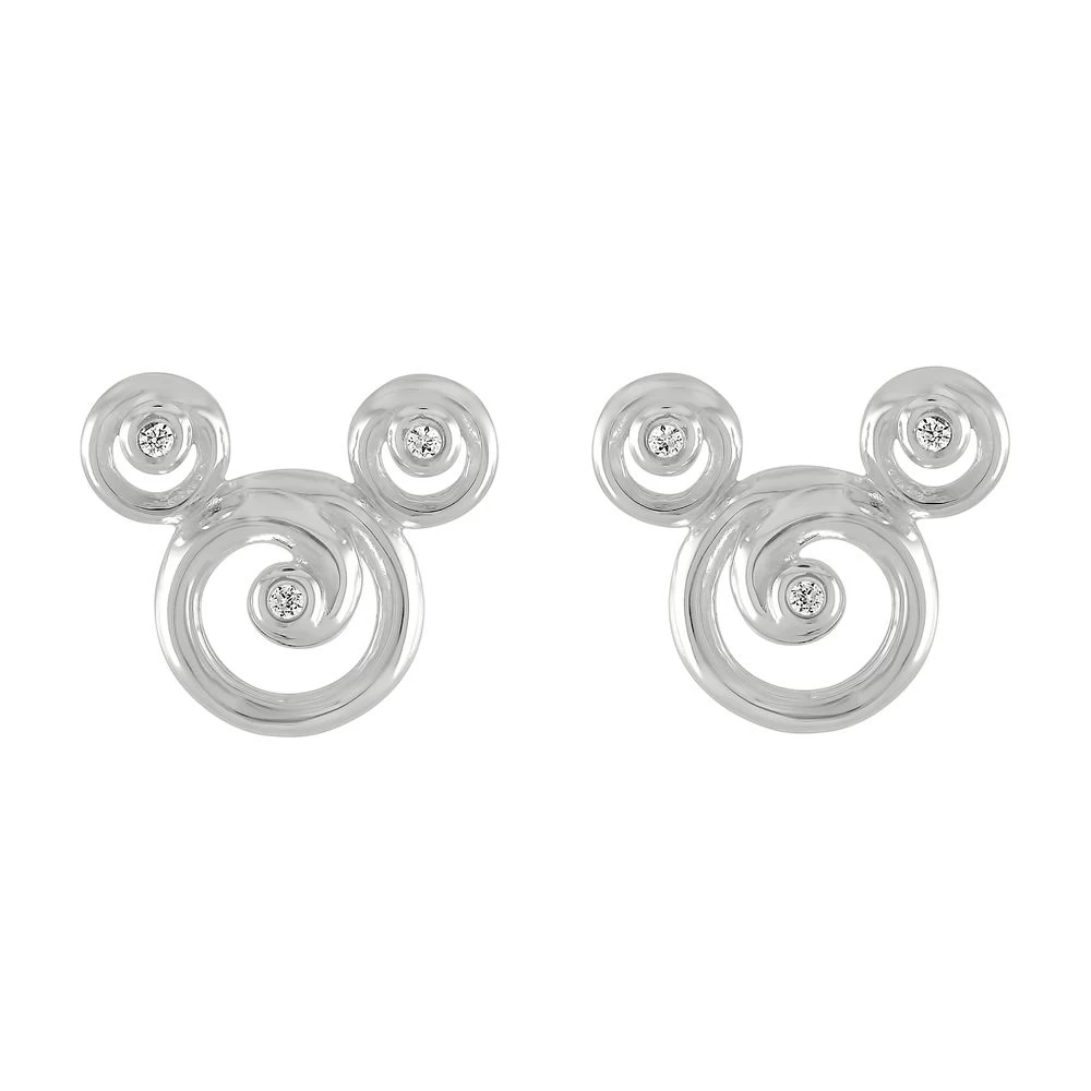 Mickey’s iconic silhouette is given a flourishing swirl with these elegant earrings by Rebecca Hook. Fashioned in sterling silver, they’re accented with clear cubic zirconia to add a sparkle to your day.