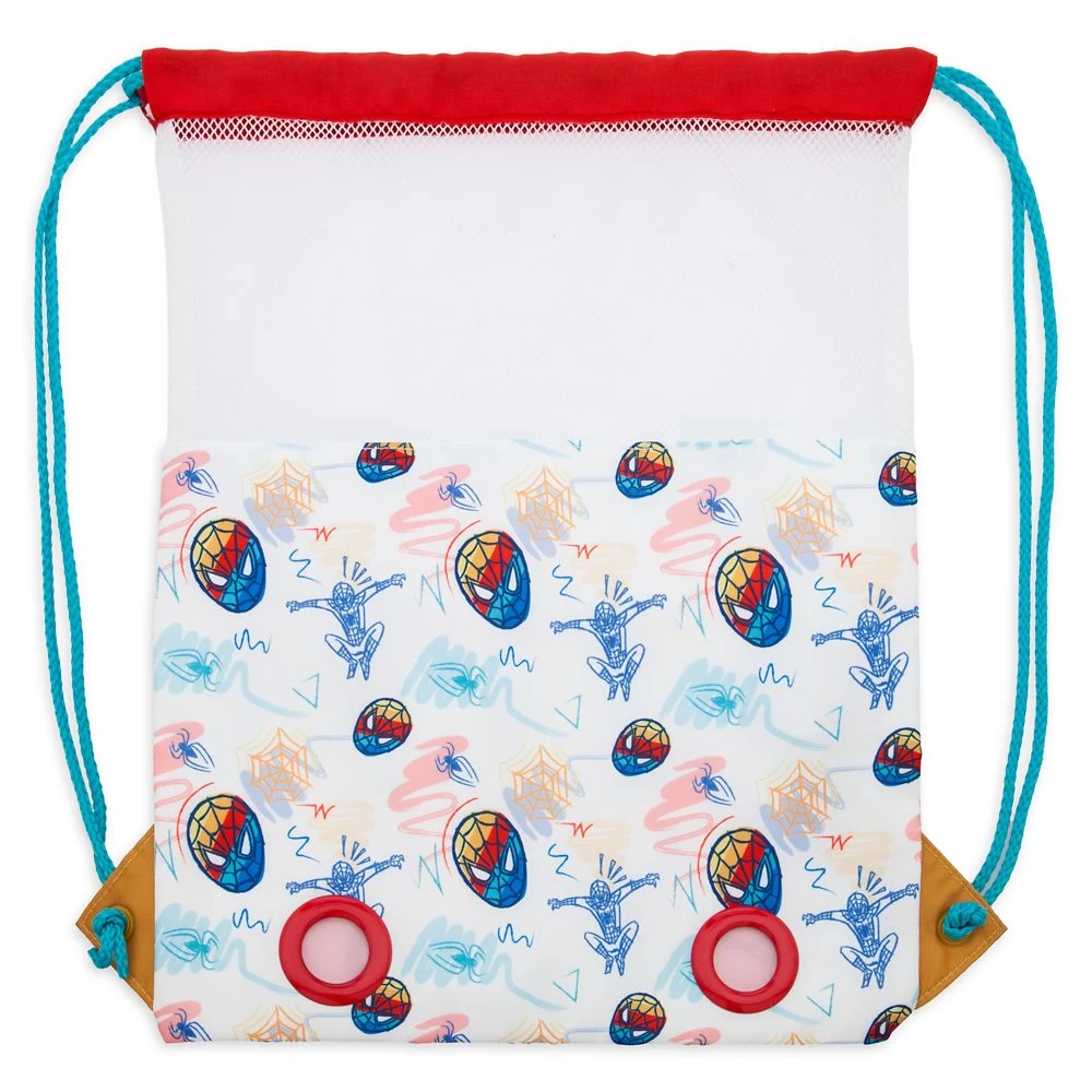 Swing into summertime action alongside your friendly neighborhood Spider-Man and this cinch-top swim bag to hold your suit, wet or dry, plus a zip compartment and a water bottle pocket to keep your heroics fully accessorized for beach or pool.