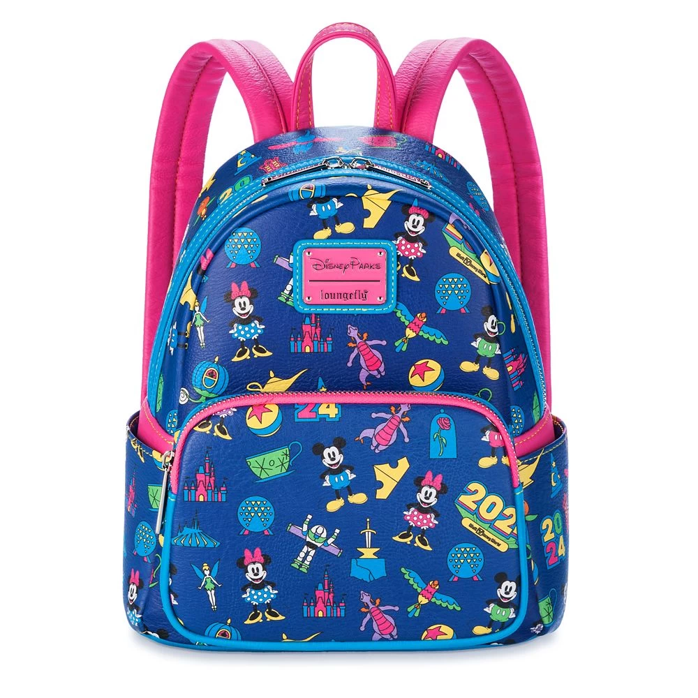 Tote your hopes and dreams into the New Year with this Loungefly mini backpack for 2024. Mickey and Minnie lead the pack on an allover print pattern featuring Walt Disney World attractions and characters on a cute, colorful carry-all that you’ll want to take along 365 days a year!
