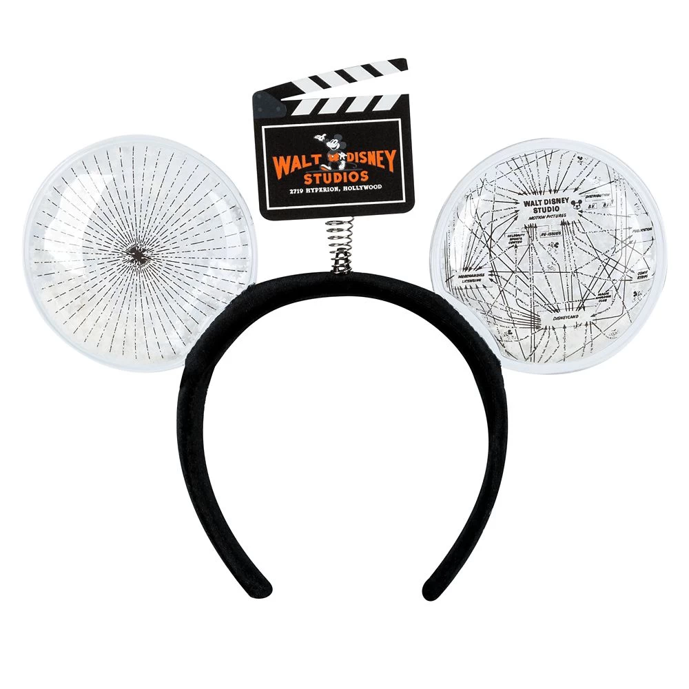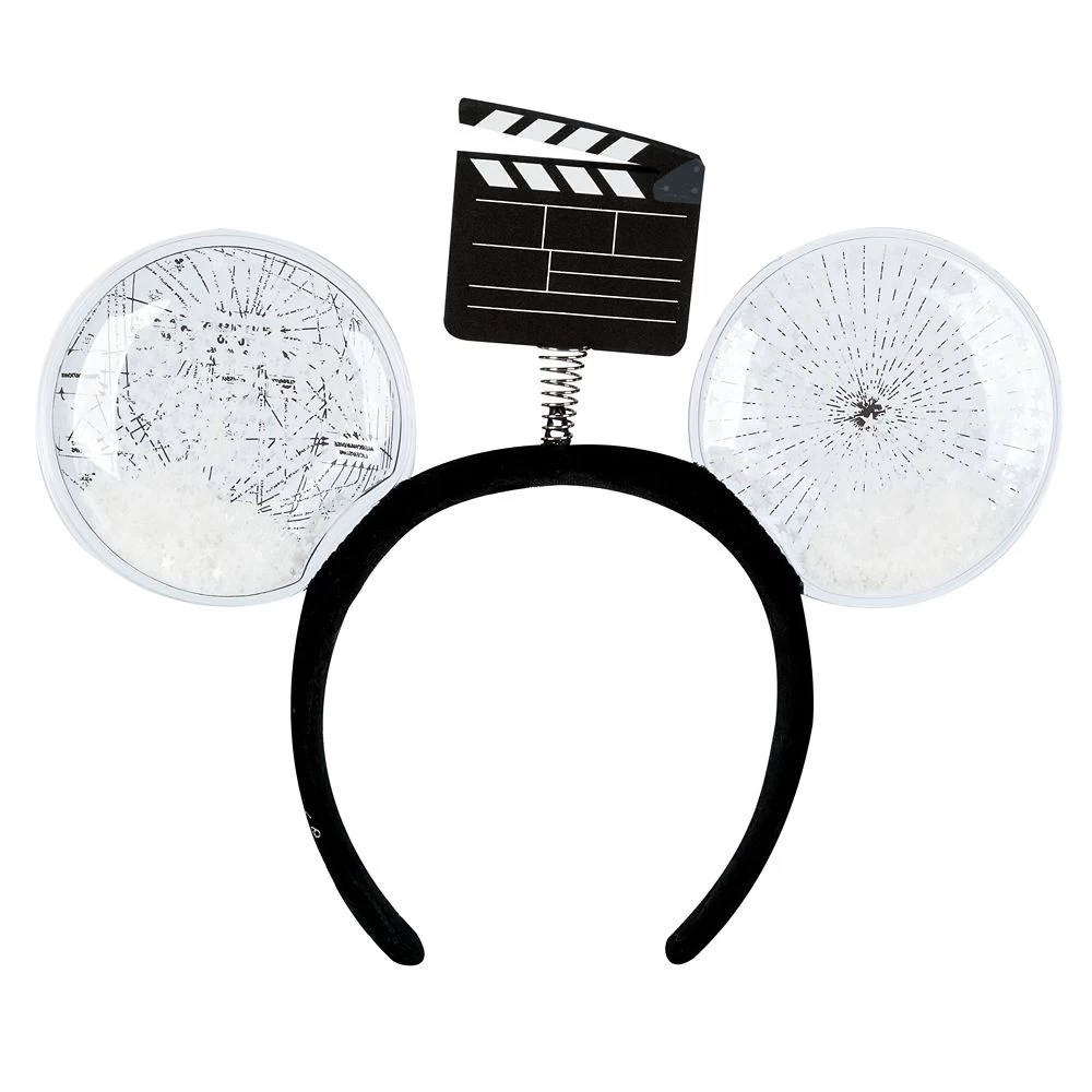 Join the Disney100 celebration wearing Mickey’s movieland ear headband with a vintage-style Walt Disney Studios clapboard topper, printed production flow chart on confetti-filled ears and embroidered Walt Disney signature on band.