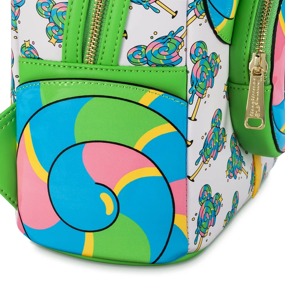 Fans of the delicious Parks lollipops will get a lick out of this mini backpack inspired by the colorful candy. Looks like someone’s taken a bite out of the Mickey icon-shaped lollipop exterior pocket on this simulated leather bag from Loungefly. Looking good enough to eat, the mouth-watering allover print features the sweet treat so you’ll hunger for your next trip to the Parks.
