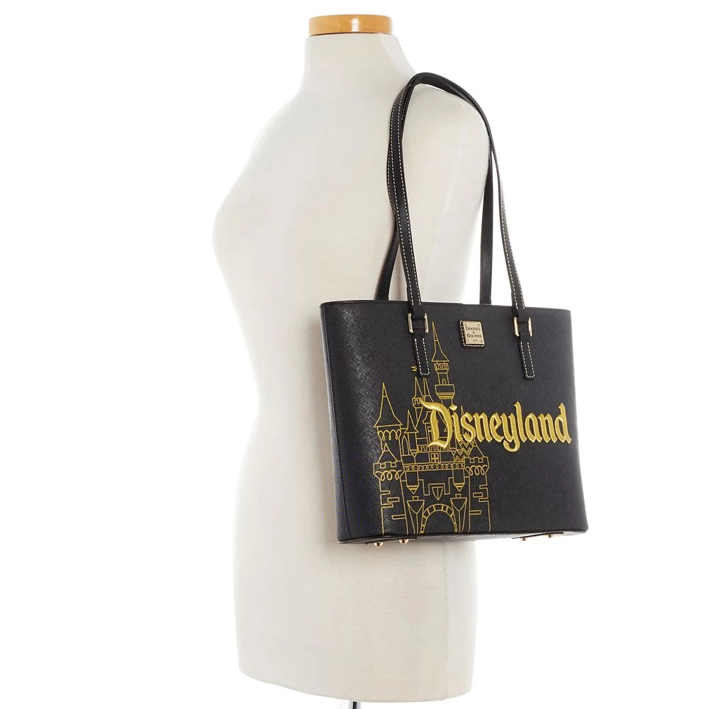 You’ll be able to carry your essentials around happily ever after in this fairytale tote featuring Sleeping Beauty Castle. The Disneyland landmark is outlined in gold on the front and back of this black coated cotton bag from The Happiest Place on Earth.